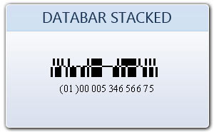 Databar stacked is a variation of RSS-14 Symbology that is stacked in two rows and is use when the normal symbol would be too wide for application. RSS-14 Stacked is used for small item marking application it is designed to be scanned by wand scanner. It can not be scanned by omni-directional scanners. With our Bar coding system you can design and print databar stacked 2D barcodes labels , tags and stickers.